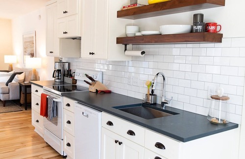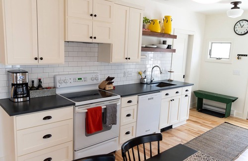 Kookaburra Cottage sleeps four comfortably with two-bedrooms and one bathroom and is perfect for a small family or a couple’s getaway. The beautifully appointed cottage has a warm living space with a large HD Smart TV, Bluray player (and so many movies!), an air-conditioner, and gas fireplace. The galley kitchen is fully stocked with everything you need for home-cooked meals. The new bathroom features a walk-in shower and double vanity. There is plenty of closet and storage space for you to unpack during your stay.