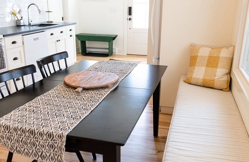 The best spot to relax during your stay at Kookaburra Cottage? The large screened-in porch! The porch is a beautiful space with another dining table, a set of the most comfortable rocking chairs, and patio lights, everything you need to enjoy warm summer nights or cool fall evenings. It is the most beautiful spot to enjoy the quiet of the woods. You can also step outside the porch to use the full-size grill, or perhaps toast up some marshmallows for smores around the fire pit.