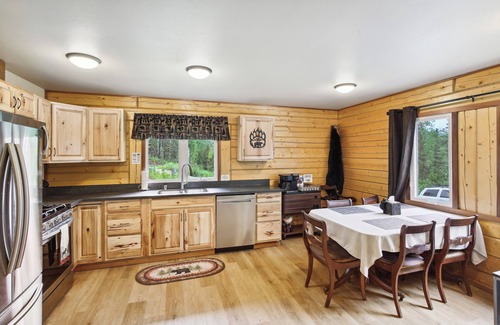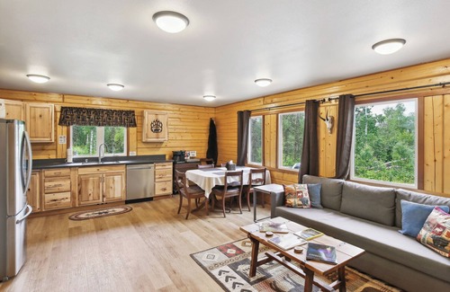 Experience the beauty of Alaska in this 2-bedroom, 1-bath Wasilla vacation rental. Nestled in a prime location, this retreat offers easy access to stunning natural attractions, including Knik Glacier and Hatcher Pass. After a day of exploring, relax on the outdoor patio surrounded by nature and bask in the night sky perfect for stargazing. With amenities like a well-equipped kitchen, free WiFi, and a washer and dryer, this log cabin is the perfect home base for adventures with your loved ones.