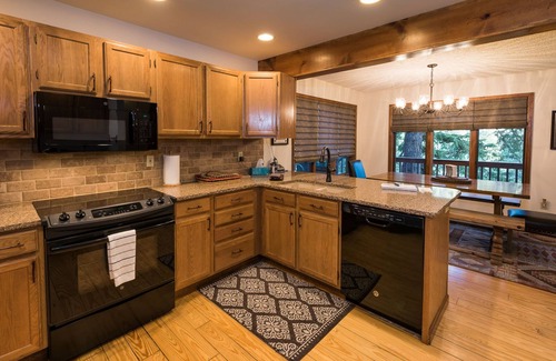 The Kyle is a well-maintained, super clean, home nestled among the trees at Aspen Brook. Rocky Mountain National Park is just a short 30 minute hike from the cabin or just a few minute drive into the entrance. It's the perfect "home base" for a nature-oriented getaway with all the comforts of home! Kyle cabin has Central Air for those few warmer summer days. Your mountain home is just steps from the Big Thompson River, near the entrance to the Rocky Mountain National Park and minutes from the heart of downtown Estes Park. The Kyle is spacious (3 levels) filled with loads of mountain-style luxuriousness, and well equipped for a wonderful stay in the mountains. A ground level private bedroom and bath, family room with adjoining ping pong table area (not in a heated area), make this home fun for the entire family. The master bedroom and bath, great room, and spacious deck with mountain views encompasses the main floor with two large additional bedrooms and beautiful bathroom on the upstairs floor. The owners of the Kyle have thought of all the details and spared no expense on furnishings, appliances and all the comforts of home!