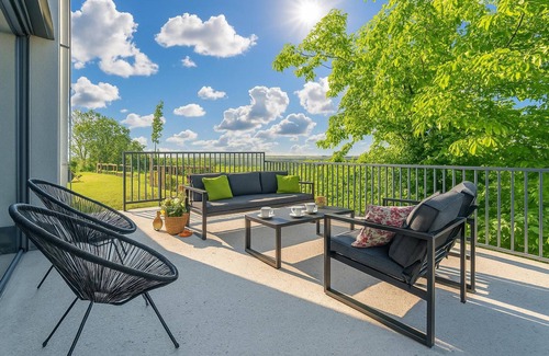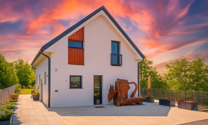 Set in the tranquil countryside of northeastern Slovenia, this peaceful retreat is surrounded by rolling hills, meadows, and charming villages. Quiet country lanes invite morning walks or cycling, and scenic viewpoints offer the perfect backdrop for relaxation. A short drive takes you to Sveti Jurij ob Ščavnici, with its local shops, cafés, and traditional charm. The Ščavnica River valley is 10 minutes away and great for gentle walks and nature spotting.