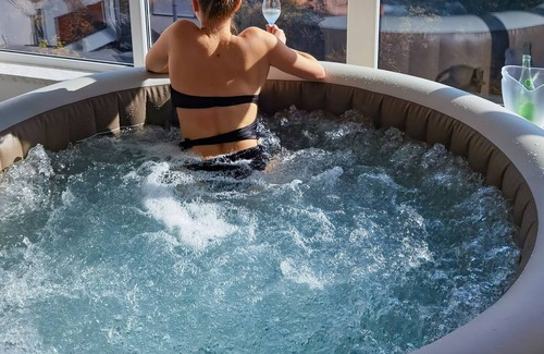 Treat yourself to a royal stay in a brand new wellness with an unforgettable view.Away from the city in a hidden location in the forest,enchanting wellness offers a magical experience in the idyllic nature.With pleasant music,candles&a glass of champagne,you can pamper yourself in sauna&massage pool.Wellness offers you an unforgettable panoramic view in all 4seasons&you can see all the way to Croatia on a clear day.Every season is a special experience, so it's always the right time to visit.