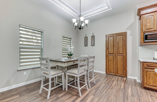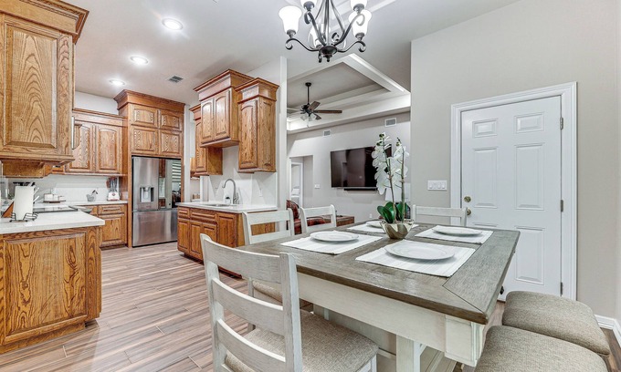 Discover the Southern charm of Texas when you stay at this 3-bedroom, 2.5-bath vacation rental in Weslaco! With a well-equipped kitchen, a fenced-in yard, and a convenient location, this home is perfect for your next small-town getaway. Take a stroll through Mayor Pablo Peña Park, catch a movie at the WesMer Drive-In, or visit nearby cities like Brownsville and South Padre Island. After the day’s activities, kick back on one of the leather sofas and enjoy your favorite movie on the Smart TV.