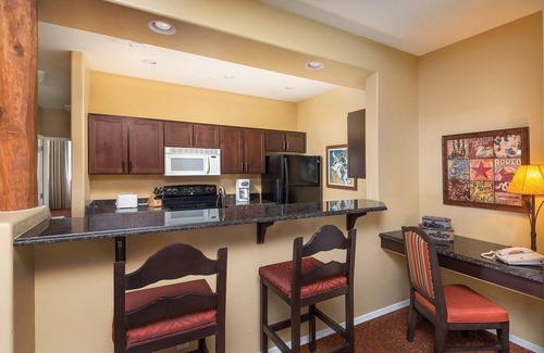 Bison Ranch features spacious two-bedroom resort suites that comfortably sleep up to six guests. You are sure to appreciate the privacy of separate bedrooms, the economy of a fully equipped kitchen, the convenience of a washer/dryer, and a gas fireplace for chilly nights. Plus, a living/dining area and TV and in each bedroom, and barbecue grill are all amenities you just won't find in an average hotel room. Relax, sit back and enjoy the view from your private balcony in this Arizona paradise!