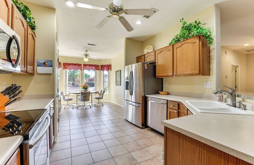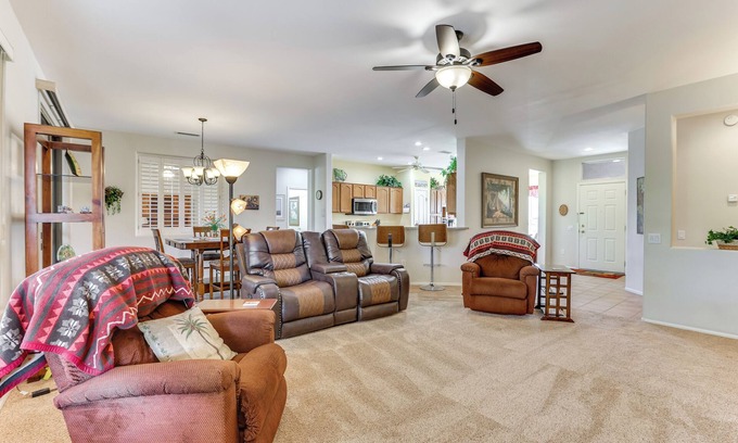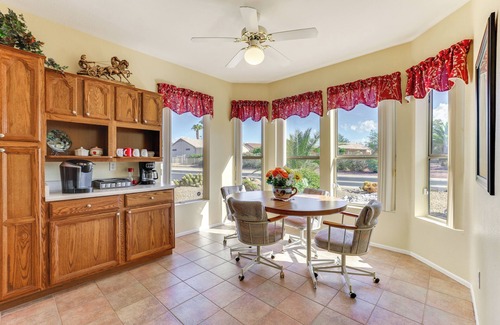 Enjoy a great mix of work and play when you stay at this Surprise vacation rental. This 2-bed, 2-bath home in West Valley offers an inviting interior with all the essentials, an outdoor space for soaking up the Sonoran sunshine all year, and an assortment of community amenities for exercise and fun. Desert hikes, stadiums, and shopping are a drive away.