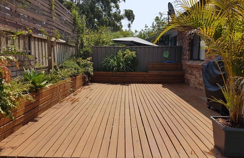 The deck is a great space for meals and is complete with a built in bench, tables, chairs, BBQ with wok burner and even a planted herb garden.