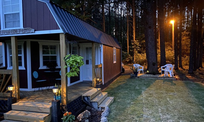This little cabin has 1 bedroom for 2 and then a loft with 2 separate cots with 3” foam mattress for children or adults 😊..