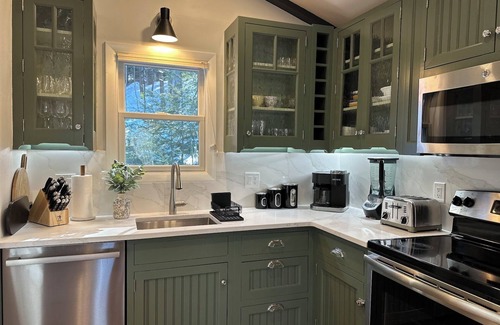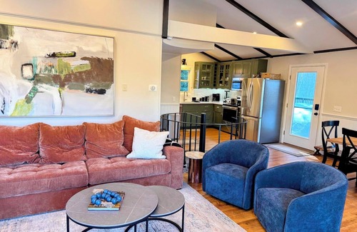 Escape to the tranquil beauty of nature in style at Whispering Pines in the Sunapee Region. A recently renovated 4-bedroom, 2-bath mid century modern retreat, Whispering Pines is perfect for families, friends, or anyone seeking a serene getaway. Our home blends sleek, contemporary design with the calming influence of the great outdoors.
