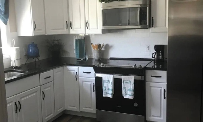 Kitchen has brand new appliances and a nice granite countertop. Brand new central air the perfect lounging sofa for watching tv or reading a book. If on an extended stay, the washer and dryer is a huge convenience and detergent is available as well. Enjoy your stay and please let me know how I can better serve you and our future guests better.