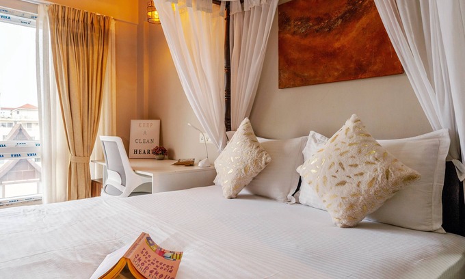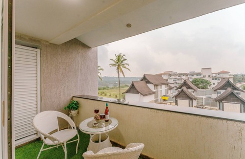 Welcome to White Feather Castle, a luxury 2BHK apartment, just minutes from Candolim Beach, North Goa. Enjoy stunning pool and river views from your private balcony. Perfect for families, couples and remote workers, with high-speed Wi-Fi, air conditioned home, fully equipped kitchen, daily cleaning, power backup, secure gated parking with swimming pool & Gym, kid friendly amenities. Steps from vibrant restaurants, nightlife, and famous beaches. Book your serene and stylish Goan getaway today!