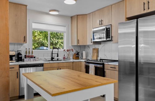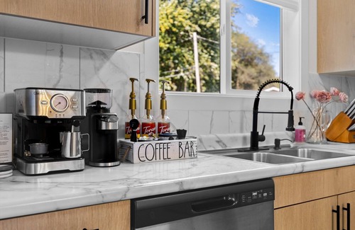 Our White Guesthouse is a newly remodeled home with modern touches throughout the home. It brings a cozy and luxurious feel with a fully equipped kitchen offering everything that you need. Enjoy a latte or iced coffee with our Geve espresso machine. This is a perfect home for long term stay for travel nurses/business trips or a short weekend stay. We offer a laundry room on the premises, wifi, and a Smart TV which includes Hulu, and any other apps you would like to use. Our master bedroom includes a private bathroom, and a small office/desk area. Our patio and pool area is privately fenced in. Enjoy the pool in the warmer months. This beautiful home is near all the popular attractions, shops, and destinations.