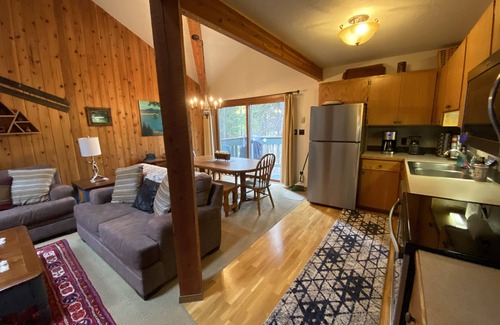 This is a beautifully appointed, quiet and cozy, Ski-In/Ski-Out getaway with a PRIVATE hot tub and private deck with grill nestled in the trees and a short walk to quaint ski village at the Whitefish Mountain Resort. For SUMMER stays enjoy Zip Lines, Mountain Biking, Mountain Slides, Scenic Lift Rides, Hiking, Berry Picking all within walking distance!