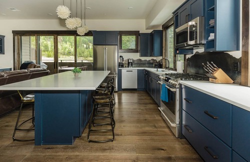 Chalet #3 - is a 2 Bedroom, 2.5 Bath Ski-in/Ski-out- chalet with a private deck and hot tub. The Master bedroom features a king bed, private fireplace and its own spa-like bathroom with amenities for your stay.The 2nd bedroom has a California king bed and twin bunk beds with built in chargers and reading lights and its own spa like bathroom. This set up is great for families with kids of all ages. Located right on the slopes for year-around activities!