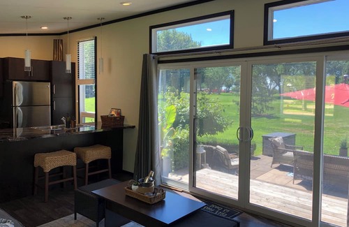 Everything provided, cottage is situated in a private resort on the 16th green of a premier public golf course. 1 bedroom and easily sleeps 4, including a sofa bed. Beautiful backyard includes patio with furniture, outdoor dinning, bbq & fire pit. Easy access to boat launch & wells, outdoor pool & playground. Minutes walk to Parkside Grille 5 star restaurant with lounge and live music. Enjoy scenic ecosystem of river & lake access to boat, fish, paddle on Lake St.Clair. Sandy beach nearby!