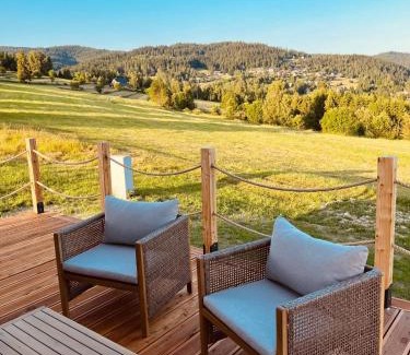 Food & DrinkWine/Champagne, Tea/Coffee makerBathroomToilet paper, Guest bathroom, Walk-in shower, Free toiletries, Body soap, Slippers, Toilet, Shower, Bathtub or shower, TowelsMedia & TechnologyFlat-screen TV, Streaming service (like Netflix), TVGeneralFire extinguisher, Heating, Smoke Alarm, Private entrance, Trash cans, Air conditioning, FanKitchenMicrowave, Kitchen, Kitchenware, Cleaning products, Dining table, Refrigerator, Kitchenette, Electric kettle, Wine glasses, Stovetop, Washing machine, Coffee machineOutdoorsBalcony, Terrace, Patio, Barbecue, Outdoor dining area, Outdoor furnitureLiving AreaSofa, Fireplace, Sitting area, Desk, Dining areaViewGarden view, City view, Mountain view, ViewBedroomChildrens' cribs, LinensBuilding CharacteristicsDetachedRoom AmenitiesClothes rack, Sofa bed, Drying rack for clothing, Socket near the bed, Feather pillowEntertainment & Family ServicesBoard games/puzzlesAccessibilityRoll-in showerSafety featuresAir purifiersPhysical distancingSingle-room AC for guest accommodation |