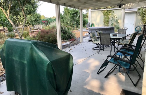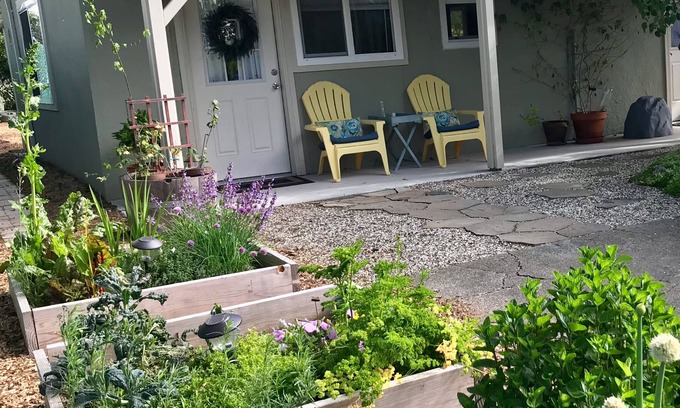 Come enjoy your separate beautifully appointed Cottage centrally located between Santa Rosa and Sebastopol. Queen sized bed in the bedroom, full bathroom with a large living room is the perfect getaway for a couple or family with young children .We have a toddler cot or portacrib that we can set up for you and there is a crib in the small office/playroom. Fully stocked kitchen, large living room with sofa, two rocking chairs, and a large flat screen tv and XBox. Your private back patio looks out onto a beautiful rural setting and has a propane barbque, hot tub and lovely dining table with overhead heater. There are reclining lounge chairs for relaxing. You can have a fire in the fire pit to complete the evening. We have a corn hole set up for the competitive guests and are very close to a 7 mile bike trail between the cities of Santa Rosa and Sebastopol. Our baby vineyard is 9 years old and the winery is open for tasting by prior arrangement! A vegetable garden, fruit trees and lots of beautiful flowers provide country ambiance and beauty.