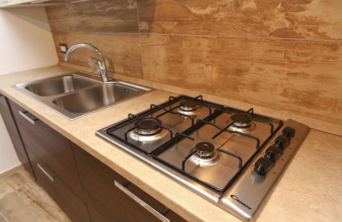 Split among two levels, Wine House has an entrance on the ground floor leading to a wide living room / kitchen open space, where you can find a few special furnishing items like jars, a real oak barrel, an ancient grape press and some magnum bottle, representing the production cycle of wine. On the same floor there are also a double sofa bed and a bathroom with shower.