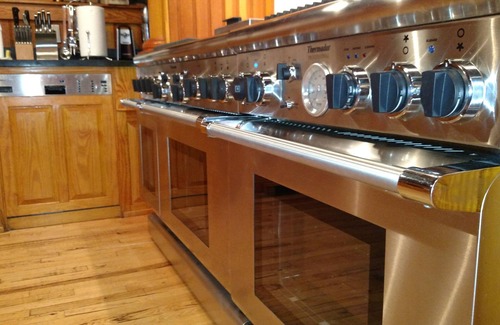 The large Professional eat-in Kitchen on the fist floor has 2 Thermador Professional Ranges sporting 10 burners, as well as a double wall oven. There is a total of 5 Ovens and 2 Dishwashers in this kitchen and there is another full kitchen on the third floor as well. Around the corner from the kitchen is a Large Dining room featuring a banquet size table and many available chairs.