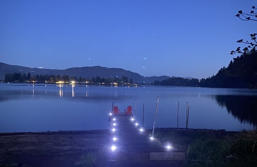 Escape to our relaxing lakefront winter oasis surrounded by mountains & nature. Enjoy warming up in the hot tub while you look out into the peaceful lake.