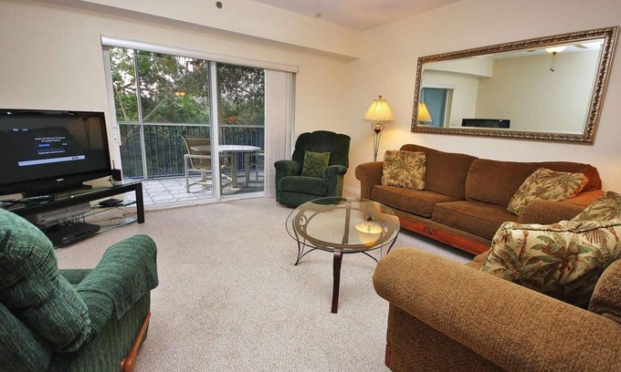 The OceanWalk resort complex is located between the beach and a large natural estuary, perfect for you whether you are a beach lover (across the street from the no-drive beach that's only a 5-minute walk to the ocean and within 2 miles of the beach driving access), or a nature lover, (kayaking through the wetlands). This fantastic condo is perfectly located next to Rec Building 1 which features a refreshing pool, hot tub, bar-b-que grills, fitness room with a walk-in sauna, tennis, shuffleboard, and basketball courts. It's also within a short walk to the beach access in front of Rec Building 2 with an additional pool, hot tub, theatre room, fitness room, bar-b-que grills, and Bocci Ball Court. It's the perfect location for your next beachside retreat or just relaxing without traveling anywhere. This Condo is everything you would expect out of your vacation rental! Beautiful 3 bedroom unit that offers a king bed in the master, a queen in the second, and 2 twins in the third with a screened patio off of the Living Room and Master Bedroom. Enjoy your morning coffee overlooking a natural estuary setting and the cool evening breeze on the screened-in patio after a long day at the beach. The fully equipped kitchen features everything you'll need to prepare meals for the family and offers seating at the kitchen counter and the dining room table. Just off the kitchen is a laundry room featuring a full-size washer and dryer. Best of all,