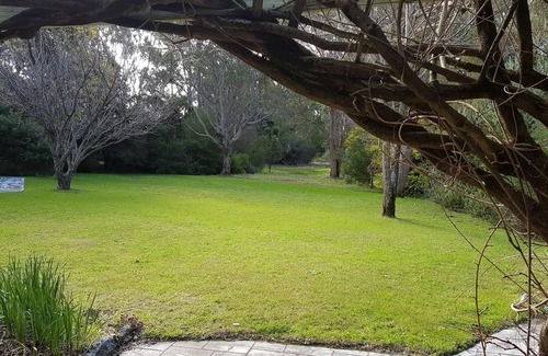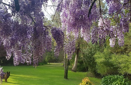 Wisteria Cottage has all the comforts of home including spacious living areas, large flat-screen TV, DVD player, comfy lounge , wood fire and large windows overlooking lawn and trees. A lovely outdoor area with gas BBQ, perfect for summer evenings and a cascade of purple wisteria in spring and summer. A perfect spot to watch the many bush birds including blue wrens, white and red breasts, all manor of parrots and the unique kookaburras.