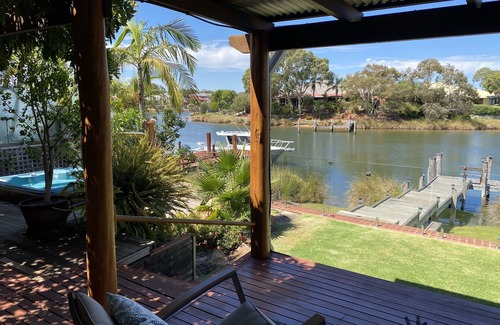 An exceptionally well located home with sweeping views along the length of a tree- lined cul-de-sac arm of the Murray Lakes Canals, with easy access to the river. Ideally located for the morning sun, whilst sheltered from the heat of the day by its aspect and the beneficial protection of the large verandah.