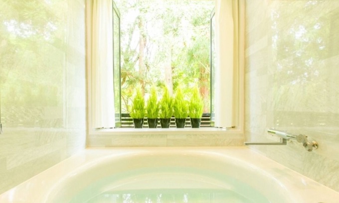 The bathroom and terrace are made with plenty of natural stones from Spain and Italy can
