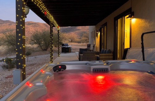 Nestled in the base of the Rincon Mountain range, our beautiful custom built home sits on five acres of lush green. Enjoy coffee in the backyard with views of the majestic mountains while watching the spectacular sunrise over the Rincon Mountains. Splash in the sparkling hot tub as you enjoy a beverage and gaze at the amazing night sky filled with thousands of stars.