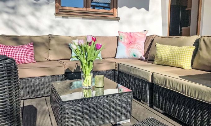 This cozy single-family house "Lieblingsplatzl" in Lenggries, Germany, is a two-story property built in 1998 and surrounded by meadows and fields. It offers a yard, internet WiFi, and parking for your convenience. The house features a central heating system, a washing machine (extra charge), and a shared tumble dryer (extra charge).
