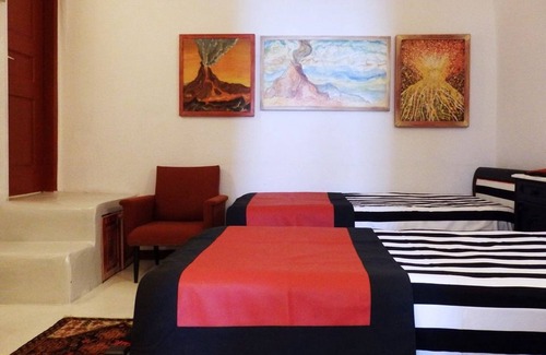 Villa Volcano awaits, promising an unforgettable stay where you can bask in the sun on the spacious roof garden, savor the breathtaking views of the village and sea, and indulge in the serene outdoor pool and jacuzzi. Please note that reaching this little slice of heaven requires ascending a charming staircase through a picturesque passageway. With its two bedrooms, the villa comfortably accommodates up to four guests, ensuring a truly memorable getaway.