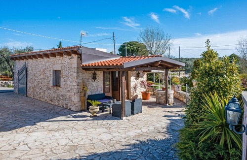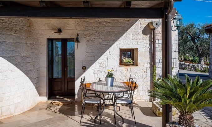 The front garden and the convival spaces give you the opportunity to fully enjoy the benefits of the gentle climate of Puglia. Outside the trullo has a patio equipped with sofa and armchairs , table to eat outdoors, barbecue , solarium with sun loungers , umbrellas to shelter from the sun on hot summer days. The trullo is equipped with air conditioning between the bedrooms and heating system. The house is located in a quiet and sunny area from morning until evening.