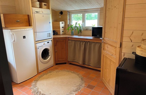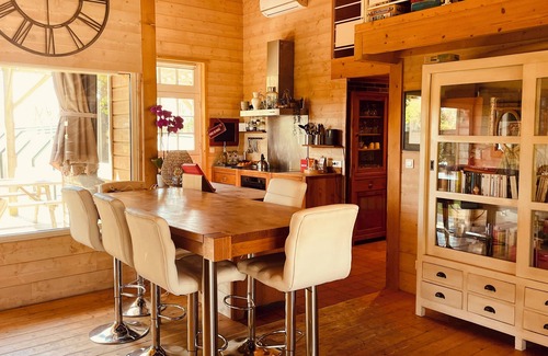 Wooden house 900m from the beach is located in Pornic. Wooden house 900m from the beach provides accommodation, featuring Air Conditioner, TV, Security/Safety, among other amenities. This House features Air Conditioner, TV, Security/Safety, to make your stay a comfortable one.