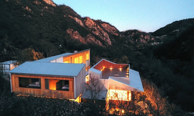 Wooden house at the foot of the Great Wall, Beijing, China. Outdoor experiences! | Cabin in Beijing