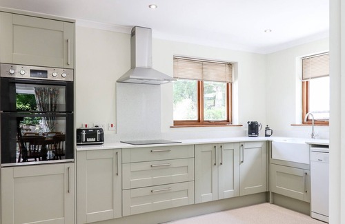 This single-storey cottage has three bedrooms including a king-size, a double with an en-suite shower room, and a double, along with a bathroom. The living areas consist of a kitchen, a utility, a living/dining room with a woodburning stove, and a conservatory. Appliances include an electric oven, induction hob, microwave, fridge, fridge/freezer, washing machine, and dishwasher, and for entertainment there is a TV with FreeSat. Outside there is ample, private, off-road parking and a multilevel garden with lawn, patio, wooded area, furniture and a stream. Please note this is a pet-free, non-smoking property. Fuel, power, starter pack for the woodburning stove, bed linen, and towels are all included, and you can find a shop and pub in 2 miles. Note: Children must be supervised at all times due to the stream in the garden. Note: There are steps and paving areas in and around the property, please take care. Woodlands is an idyllic retreat for a break to Devon, any time of year.