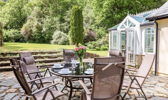 Amenities: Oil central heating with woodburning stove. Electric oven, induction hob, microwave, fridge, fridge/freezer, washing machine, and dishwasher. TV with FreeSat. Wifi. Fuel, power and starter pack for woodburning stove inc. in rent. Bed linen and towels inc. in rent. Ample, private, off-road parking. Multilevel garden with lawn, patio, wooded area, furniture and stream. Sorry, no pets and no smoking. Shop and pub 2 miles. Note: Children must be supervised at all times due to the stream in the garden. Note: There are steps and paving areas in and around the property, please take care.