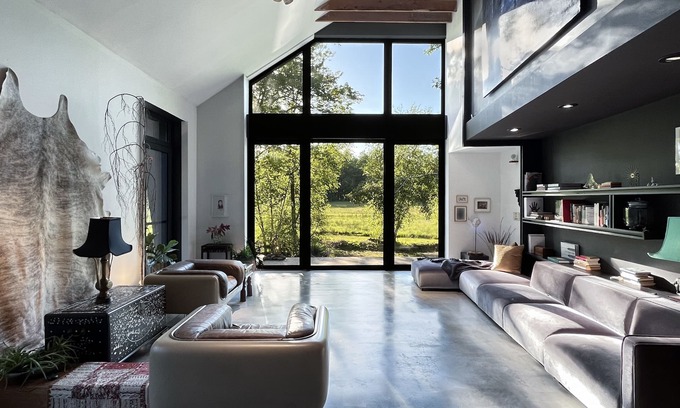 The property is located within a 10 minute walking distance to the center of the historic town of Woodstock, NY. The 2500sft house is the former Museum House that used to hold Mabel Marsh’s art collection that was later acquired by the Smithsonian Institute. It has been architect gut-renovated into a dramatic living experience surrounded by nature and water. The Pond and Carriage House are at the opposite side of the estate, no adjacent outdoor areas are shared, except the driveway, the overlook lounge chair, and 'sand land' can also be visited by guests from the Pond House, both are not directly visible from the house or patio. The Pond House is visible in the distance from the north terrace only. The swim holes in the woods are shared, walking distance to them is a few minutes though the woods.