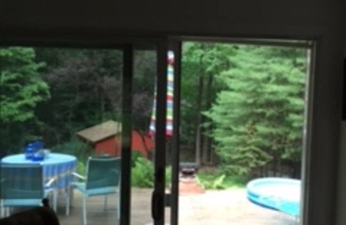 AC in summer is available (additional fee--just let us know your needs). The house also stays cool as it is covered by shade trees in summer. (In winter, the sunlight comes through south-facing bay window for added natural warmth. Regular oil-furnace heat is also available for winter as well as inset-fireplace.)