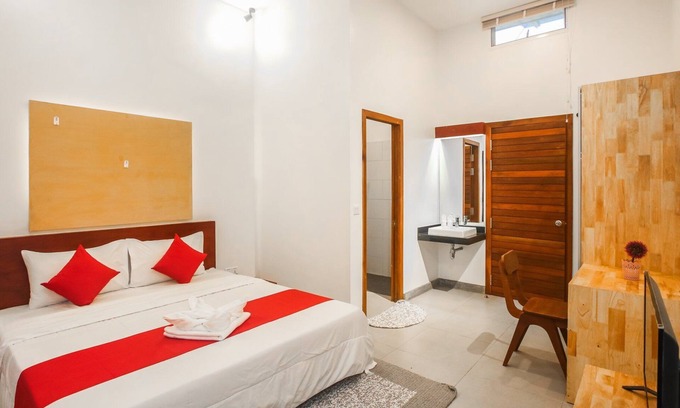 You will feel at ease living as be your home with our complete setting/facilities. Each Studio Room is air-conditioned and a ceiling fan, a king bed, a cable TV, attached to kitchenette with cooking utensils, a fridge and a washer. Further each has its direct access to lush tropical garden.