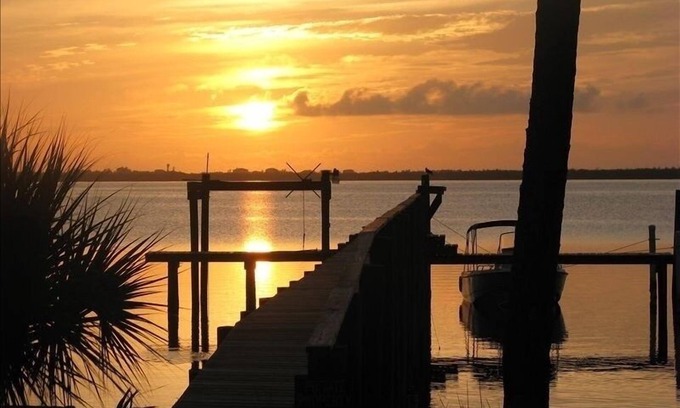 Enjoy a spectacular morning sunrise on the Indian River from the foot of your bed or right on our back porch! From our home, you won't see any roads with traffic, concrete high rises, bridges or other unnatural structures to spoil the view. Just water, wildlife and natural Florida fauna. In addition, make sure your vacation home choice does not have you driving everywhere. All of the river front restaurants and parks are within walking distance. There's a pet park, City park, free kids water park, public boat ramp and 2 City fishing piers just steps outside our front door. The City park hosts arts and crafts shows many weekends throughout the year.