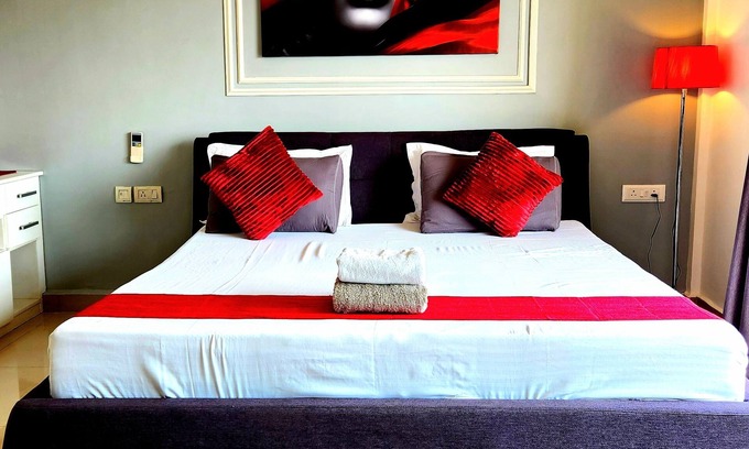 Incredible city and garden view from balcony. Big living space of 900 sq. ft. Stylish and peaceful apartment. Full functional kitchen. Swimming pool, muli-gym, jogging track,restaurant, spa, roof garden etc. etc. for urban living experience.