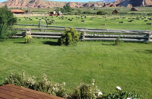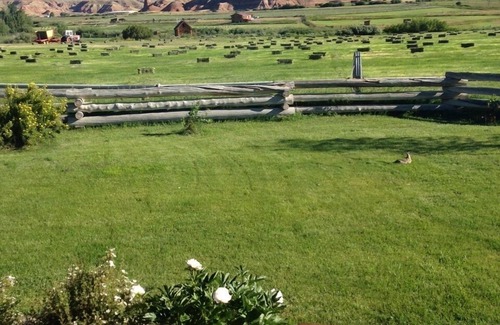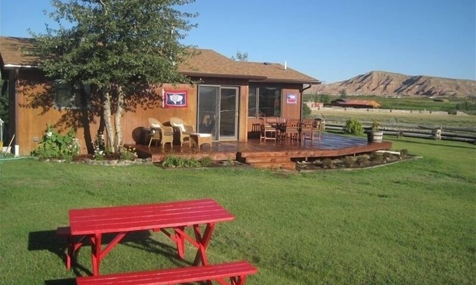Private 14-acre small ranch located in the heart of Wyoming cowboy country. The cabin and acreage are located on the Wind River with exclusive private access to fly-fishing. Use the cabin as home-base to visit Yellowstone and Grand Teton National Park. There are beautiful views from every side of the cabin--enjoy the spectacular sunrises over the Badlands, and a sunset dropping into the Jackson Valley. There are two comfortable bedrooms and one bathroom with a full washer and dryer, perfect for a small family. There is a large screen TV with satellite television and Apple TV and wireless internet. Kitchen is fully equipped for even the most gourmet meals. Enjoy packing the picnic basket if you would like to have a picnic nearby.