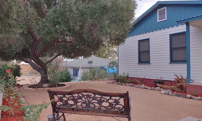 This is a two bedroom one bath small house built in 1950. It's unique and built in a quiet neighborhood. If you're looking for a getaway in Wickenburg come visit our house! There's two bedrooms with queen size beds and each one. Bathroom has a full shower. Kitchen is arranged with what you need for cooking. There's an outside grill and small patio. Covered parking is available under the carport that's built on the house.