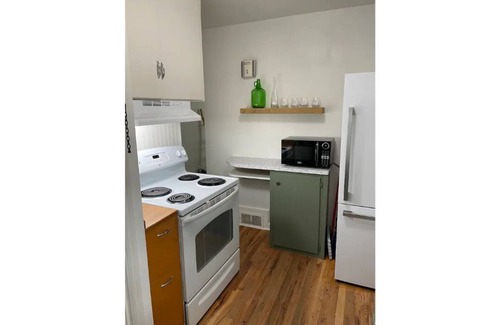 Two bedroom private house accessed by front door. This cute historic home has a full bathroom, living room with fireplace (not usable), dining room, and kitchen. Big picture window gives you a lovely view of the beautiful College of Idaho campus directly across the street. Kitchen window views the beautiful new library. This home is an upstairs unit and there may or may not be guests in a downstairs unit. It has its own private entrance.