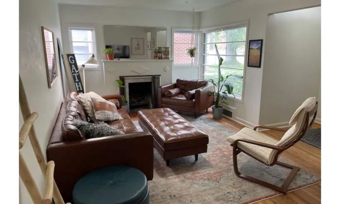 Guests have shared yard with downstairs unit, but it is fully fenced and offers covered patio, grass, and lots of room for pregame grilling and yard games! Back yard is accessed by the side gate. This property can be booked with the downstairs 3 bedroom apartment (if available) and used as one big house if needing a larger space. There is a first come, first served parking space immediately behind the garage accessed by the alley. Also, there is ample street parking immediately in front of the house. Cleveland is a busy street, so please exercise caution.