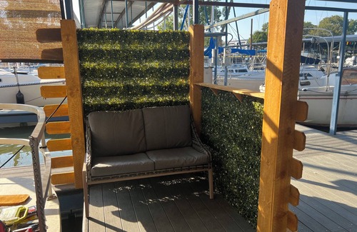 Please note: The boat remains docked and does not leave its slip. Space is cozy but comfortable for a houseboat.