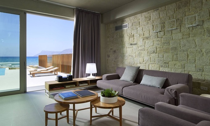 Combining calming décor with Cretan aesthetics, Ammos offers peace and tranquillity by the shore.