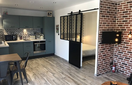 It has a lighted terrace with its 10m2 bbq not overlooked or joint ownership. A large picture window gives you the light of a beautiful T2 of 35 m2 with very neat decor for 3 people maximum with a closed sleeping area which has a large mirror cupboard with a 140 cm bed (dunlopillo), a bathroom (grohe taps) with washing machine, towel dryer, its fully equipped kitchen with fridge, dishwasher, toaster, kettle, coffee machine, hood, hob, microwave with dining area.