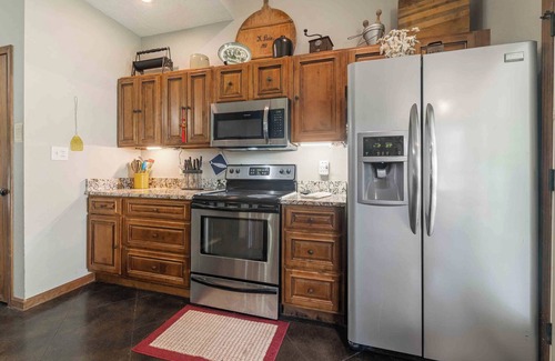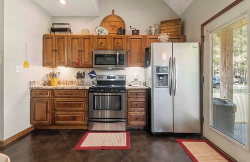 Holder Hideaway's downstairs offers a living room, kitchen with long bar, dining area, master bedroom and a full bath with spa tub. Washer and dryer are also located on the first floor. Venture upstairs to an open loft with TV and game table. Also upstairs are two more bedrooms, one having a Queen and Bunk Beds, and a full bath with spa tub.