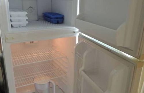 There is a single bed, and a couch that pulls out into a Queen bed for two people. Small dining area, and Kitchen with a two burner cook top , medium sized fridge, toaster oven, and coffee maker. There are pots and pans, cooking Knives, cutting board, cooking utensils, cutlery.