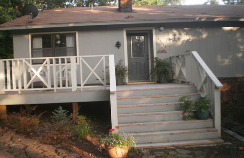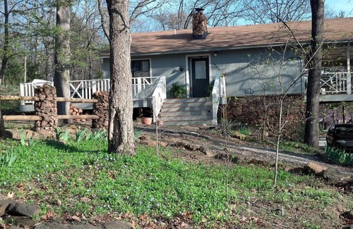 Set in a wooded rural neighborhood, this 2-level house has all the comforts of home: 3 bedrooms, 2 baths, eat-in kitchen with granite counter tops, game room, living room, laundry room with washer & dryer, wireless internet, 2 large decks, gas grill, fire pit, carport and plenty of additional parking. Home sleeps 8 easily. Close to restaurants, marina, and store/gas station. Owners/operators live next door.